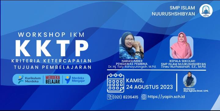 Workshop Implementasi Kurikulum Merdeka berisi pelatihan untuk menyusun perangkat pembelajaran yang diikuti seluruh guru SMP Islam Nuurushshibyan. Kegiatan ini menghadirkan narasumber Ibu Dr. Hj. Taty Rahayuningsih, M.Pd. yang juga merupakan Pengawas Pembina SMP Islam Nuurushshibyan. Workshop ini merupakan kelanjutan dari In House Training yang telah dilaksanakan pada tahun sebelumnya yang memfokuskan pada CP, TP dan ATP. Tema yang diangkat pada workshop kali ini yaitu “Pentingnya Memahami Kriteria Ketercapaian Tujuan Pembelajaran (KKTP)”.